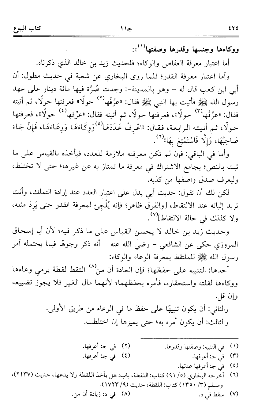أما اعتبار معرفة العفاص والوكاء؛ فلحديث زيد بن خالد الذي ذكرناه.