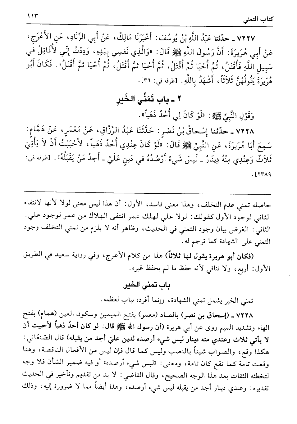 تمني الخير يشمل تمني الشهادة، وإنما أفرده بباب لعظمه.