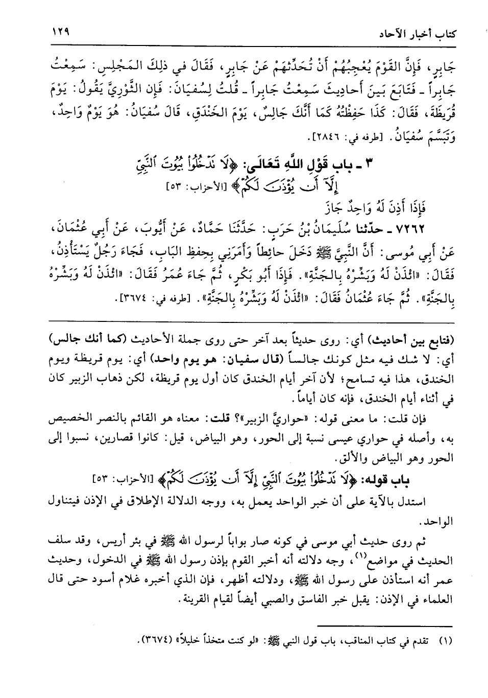 باب قوله: {لَا تَدْخُلُوا بُيُوتَ النَّبِيِّ إِلَّا أَنْ يُؤْذَنَ لَكُمْ} [الأحزاب: 53]
