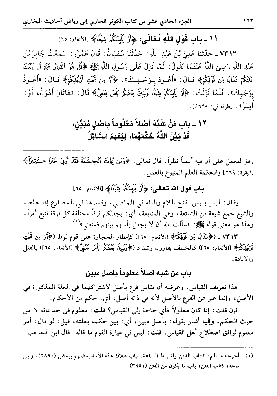 باب قول الله تعالى: {أَوْ يَلْبِسَكُمْ شِيَعًا} [لأنعام: 65]