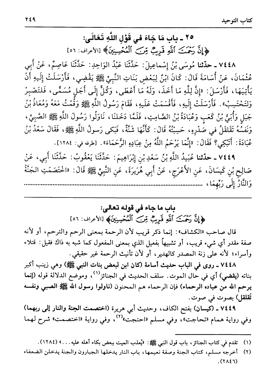 باب ما جاء في قوله تعالى: {إِنَّ رَحْمَتَ اللَّهِ قَرِيبٌ مِنَ الْمُحْسِنِينَ} [الأعراف: 56]