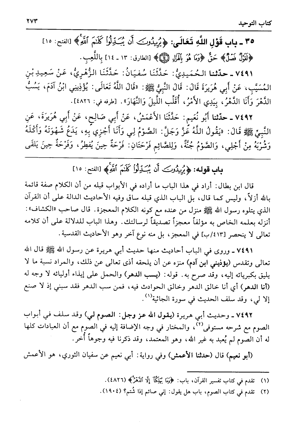 باب قوله: {يُرِيدُونَ أَنْ يُبَدِّلُوا كَلَامَ اللَّهِ} [الفتح: 15]