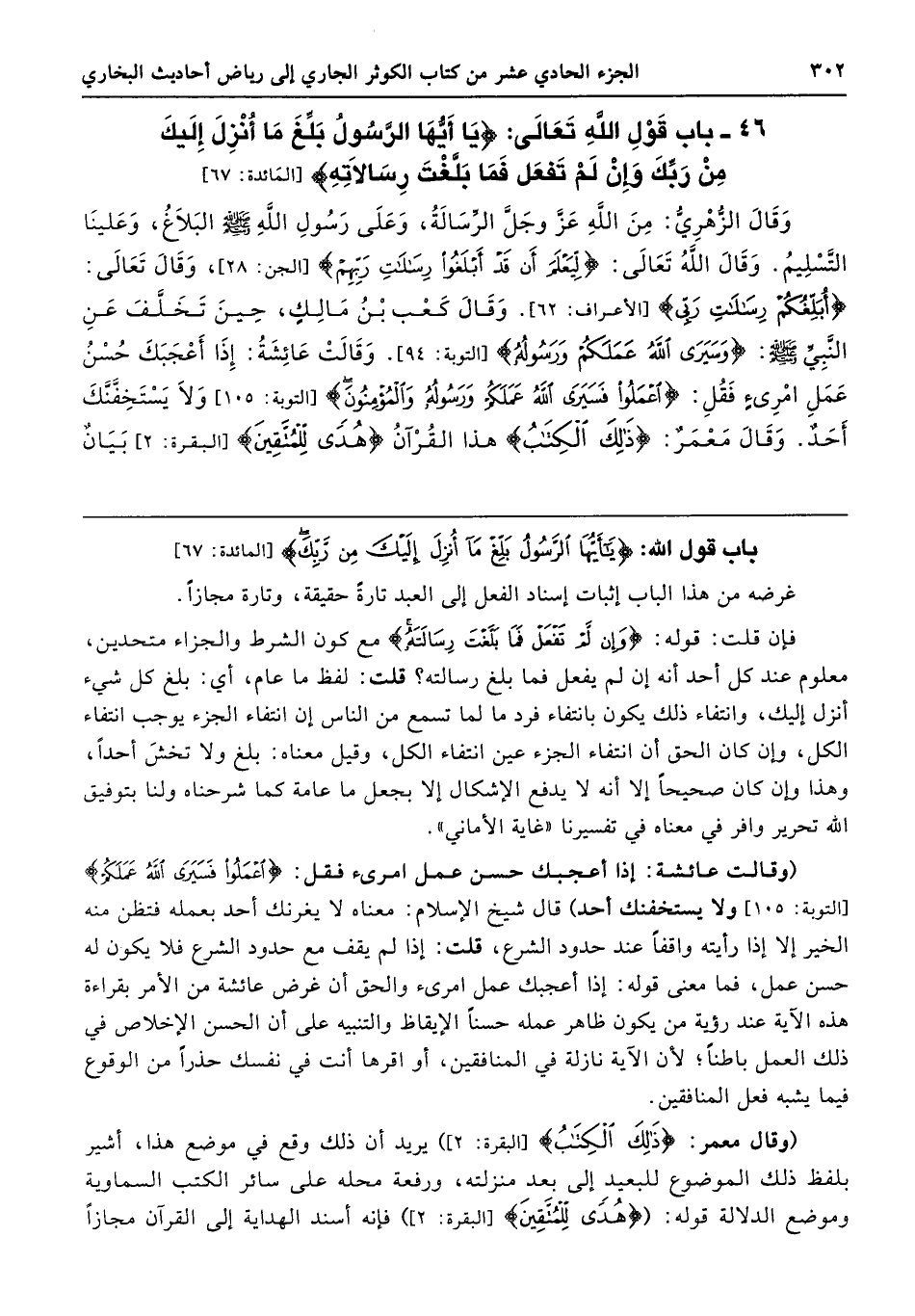 كتاب الكوثر الجاري إلى رياض أحاديث البخاري (اسم الجزء: 11)