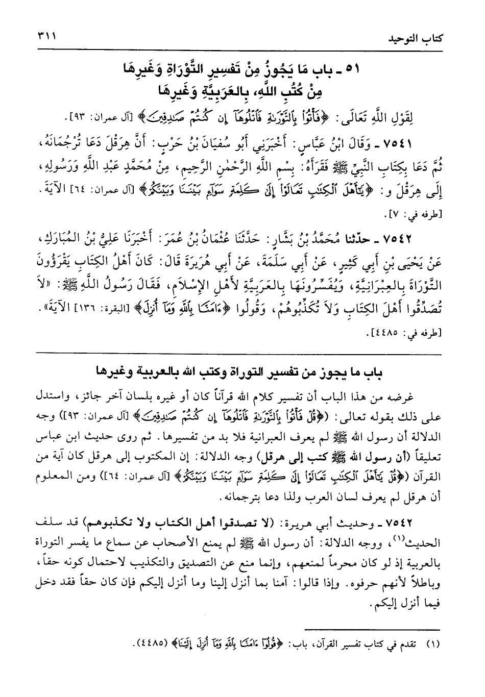 باب ما يجور من تفسير التوراة وكتب الله بالعربية وغيرها