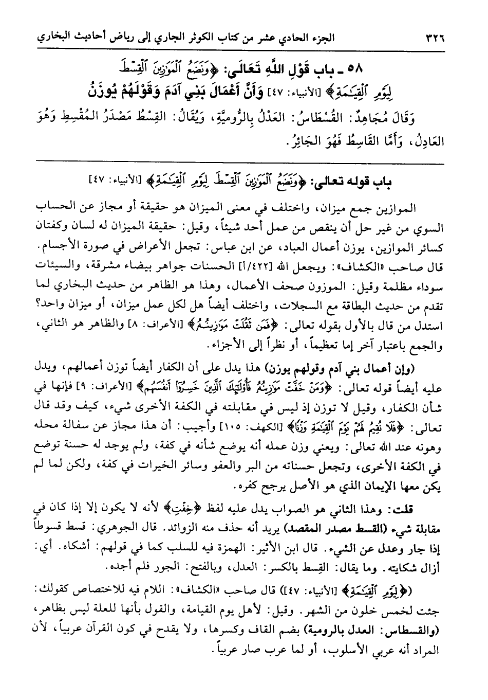 باب قوله تعالى: {وَنَضَعُ الْمَوَازِينَ الْقِسْطَ لِيَوْمِ الْقِيَامَةِ} [الأنبياء: 47]