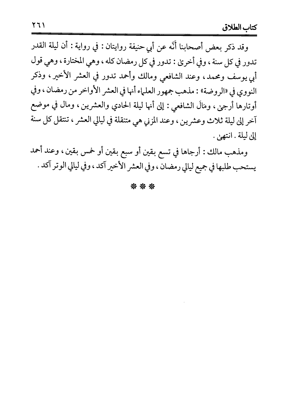 وقد ذكر بعض أصحابنا أَنَّه عن أبي حنيفة روايتان: في رواية: أن ليلة القدر تدور في كل سنة، وفي أخرى: تدور في كل رمضان كله، وهي المختارة، وهي قول أبي يوسف ومحمد، وعند الشافعي ومالك وأحمد تدور في العشر الأخير، وذكر النووي في "الروضة": مذهب جمهور العلماء أنها في العشر الأواخر من رمضان، وفي أوتارها أرجى، ومَالَ الشافعي: إلى أنها ليلة الحادي والعشرين، ومال في موضع آخر إلى ليلة ثلاث وعشرين، وعند المزني هي متنقلة في ليالي العشر، تنتقل كل سنة إلى ليلة. انتهى.