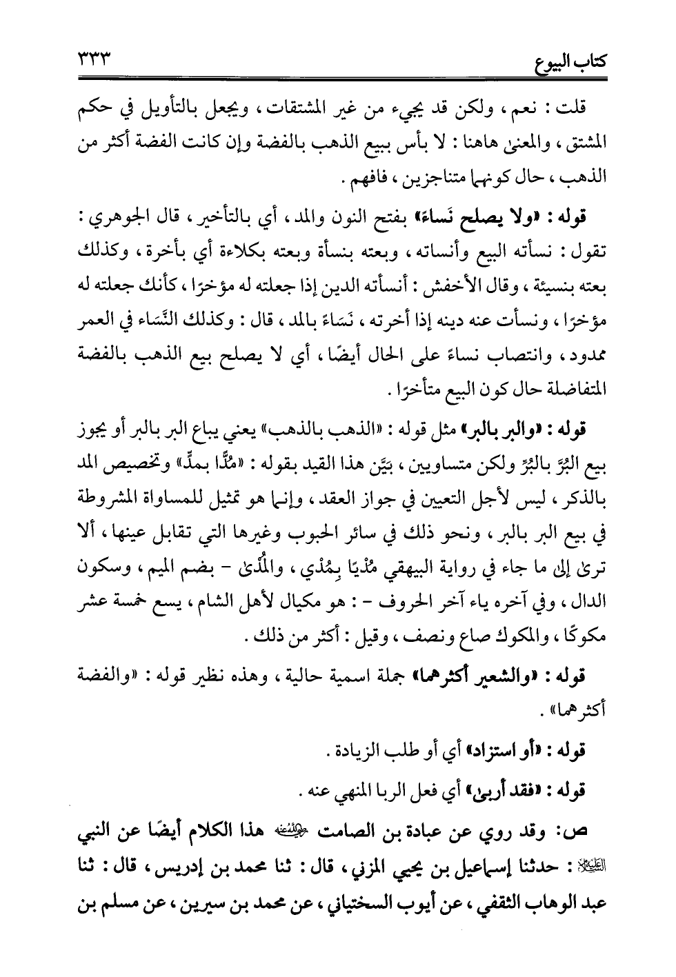 ص: وقد روي عن عبادة بن الصامت -رضي الله عنه- هذا الكلام أيضًا عن النبي -عليه السلام-: حدثنا إسماعيل بن يحيى المزني، قال: ثنا محمد بن إدريس، قال: ثنا عبد الوهاب الثقفي، عن أيوب السختياني، عن محمد بن سيرين، عن مسلم بن