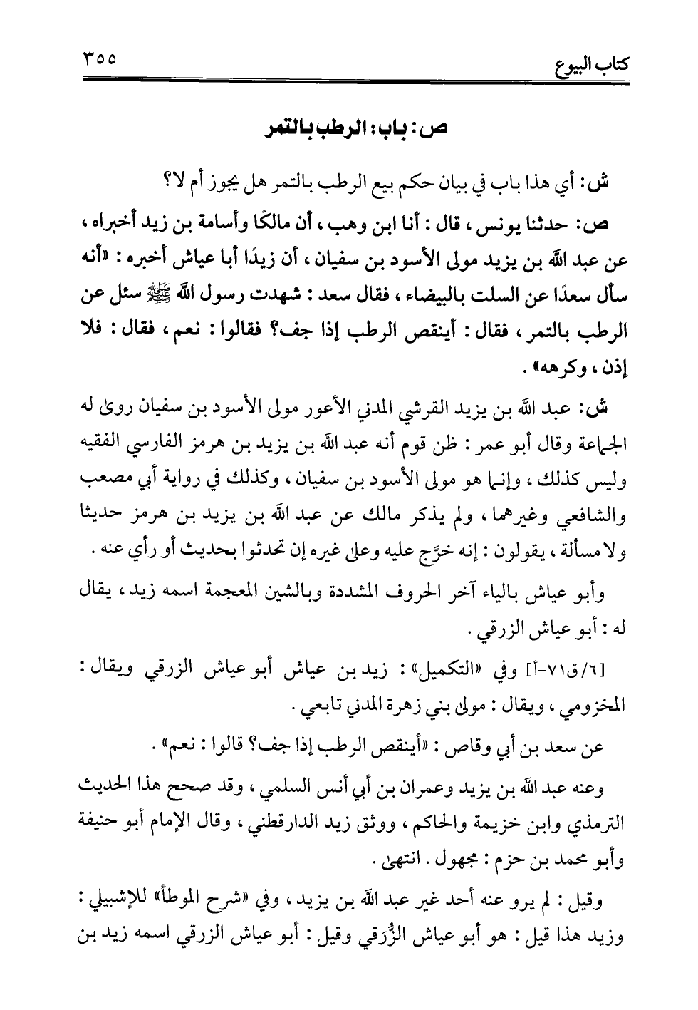 عن سعد بن أبي وقاص: "أينقص الرطب إذا جف؟ قالوا: نعم".