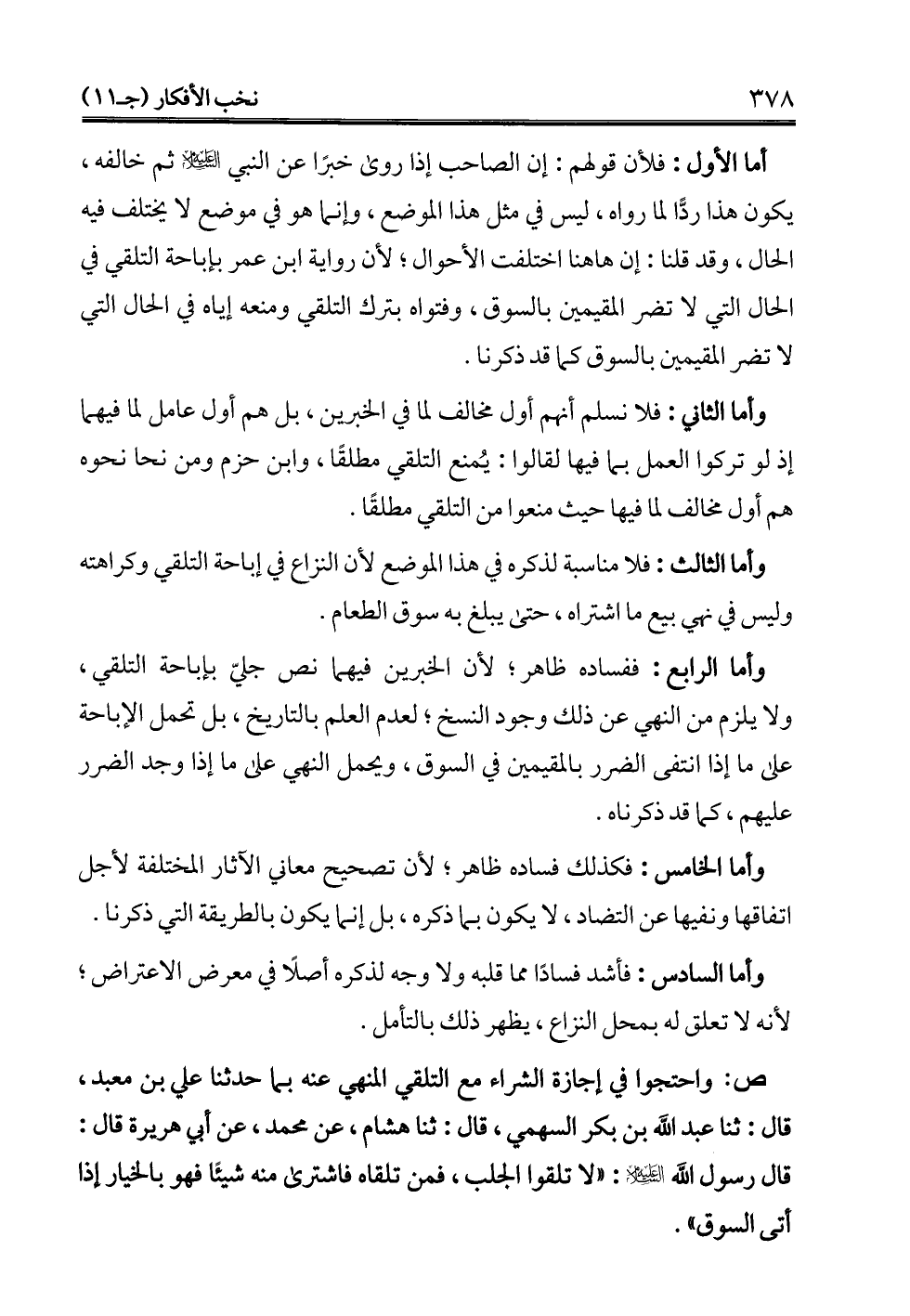 وأما الثاني: فلا نسلم أنهم أول مخالف لما في الخبرين، بل هم أول عامل لما فيهما إذ لو تركوا العمل بما فيها لقالوا: يُمنع التلقي مطلقًا، وابن حزم ومن نحا نحوه هم أول مخالف لما فيها حيث منعوا من التلقي مطلقًا.