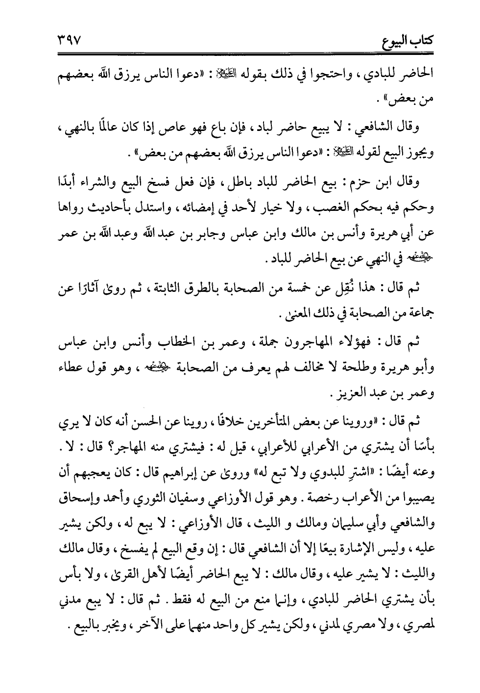 الحاضر للبادي، واحتجوا في ذلك بقوله -عليه السلام-: "دعوا الناس يرزق الله بعضهم من بعض".