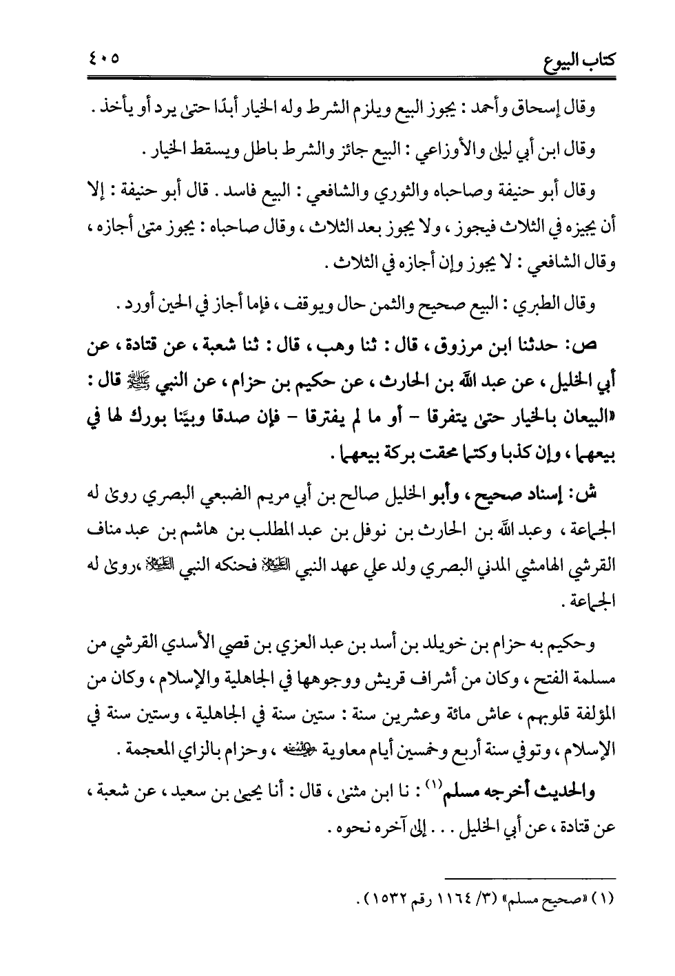 ش: إسناد صحيح، وأبو الخليل صالح بن أبي مريم الضبعي البصري روى له الجماعة، وعبد الله بن الحارث بن نوفل بن عبد المطلب بن هاشم بن عبد مناف القرشي الهامشي المدني البصري ولد على عهد النبي -عليه السلام- فحنكة النبي -عليه السلام-، روى له الجماعة.