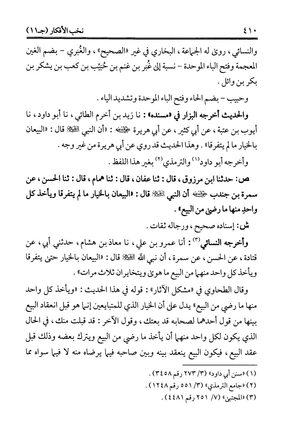 وأخرجه النسائي (¬3): أنا عمرو بن علي، نا معاذ بن هشام، حدثني أبي، عن قتادة، عن الحسن، عن سمرة، أن نبي الله -عليه السلام- قال: "البيعان بالخيار حتى يتفرقا ويأخذ كل واحد منهما من البيع ما هوى ويتخايران ثلاث مرات".