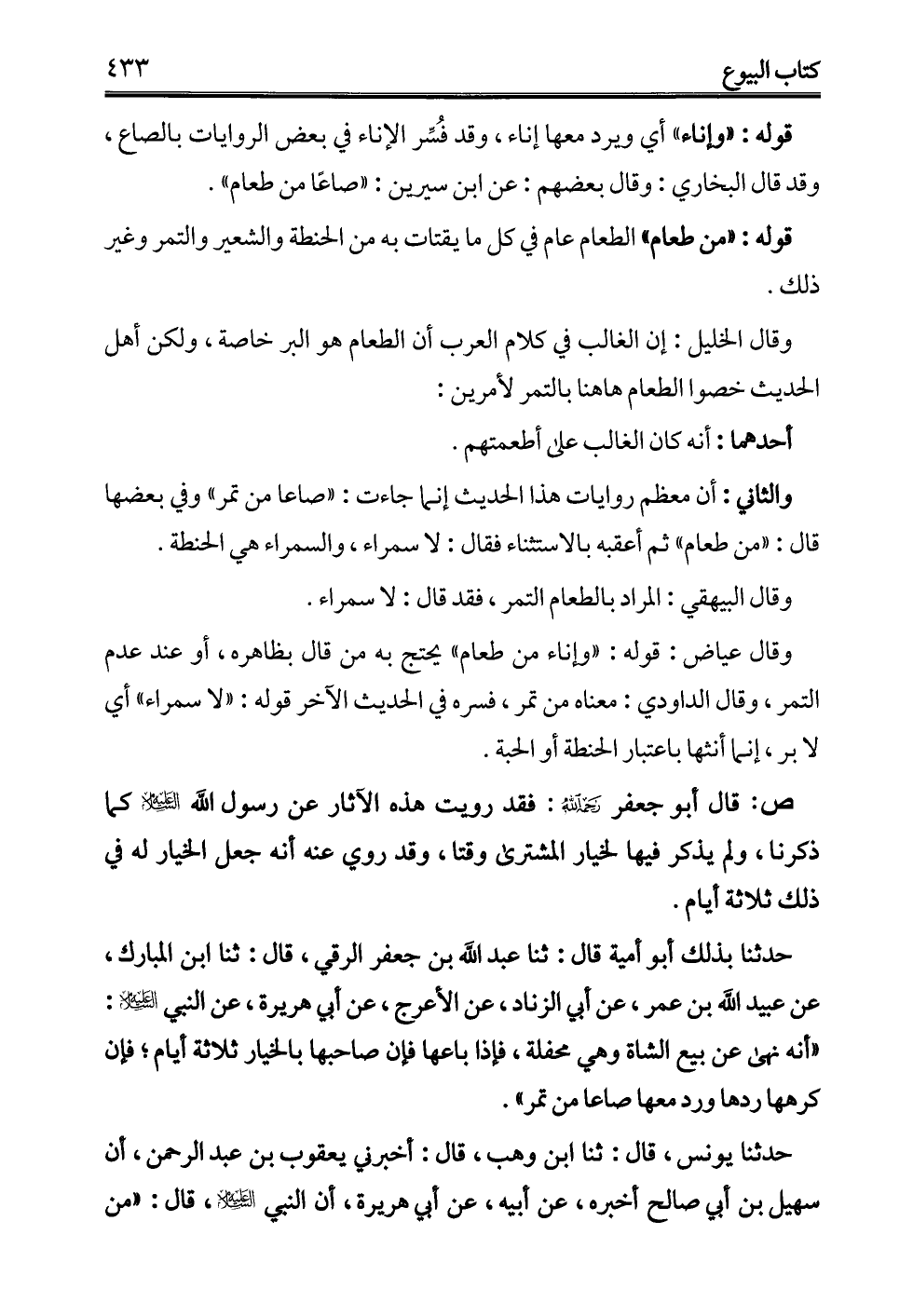 وقال الخليل: إن الغالب في كلام العرب أن الطعام هو البر خاصة، ولكن أهل الحديث خصوا الطعام ها هنا بالتمر لأمرين: