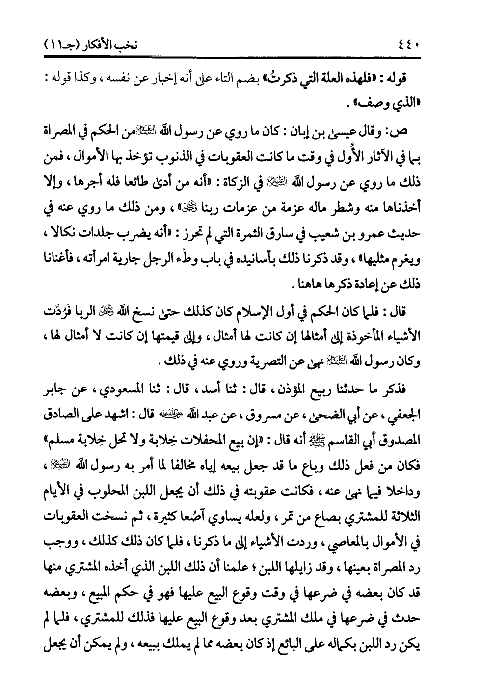 كتاب نخب الأفكار في تنقيح مباني الأخبار في شرح معاني الآثار (اسم الجزء: 11)