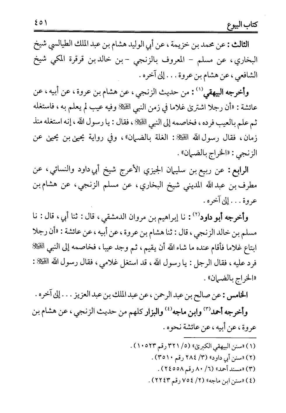 الرابع: عن ربيع بن سليمان الجيزي الأعرج شيخ أبي داود والنسائي، عن مطرف بن عبد الله المديني شيخ البخاري، عن مسلم الزنجي، عن هشام بن عروة ... إلى آخره.
