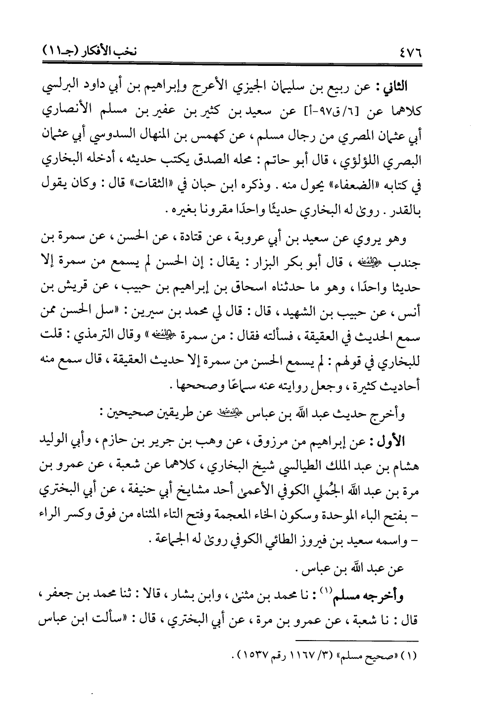 وأخرجه مسلم (¬1): نا محمد بن مثنى، وابن بشار، قالا: ثنا محمد بن جعفر، قال: نا شعبة، عن عمرو بن مرة، عن أبي البختري، قال: "سألت ابن عباس