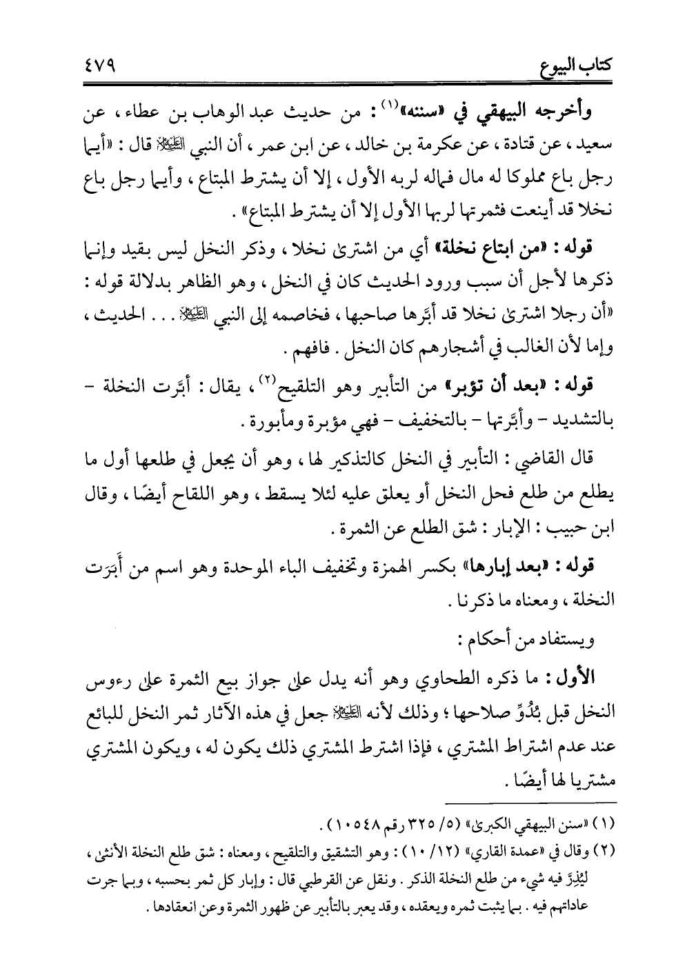(¬2) وقال في "عمدة القاري" (12/ 10): وهو التشقيق والتلقيح، ومعناه: شق طلع النخلة الأنثى، ليُذِرَّ فيه شيء من طلع النخلة الذكر. ونقل عن القرطبي قال: وإبار كل ثمر بحسبه، وبما جرت عاداتهم فيه. بما يثبت ثمره ويعقده، وقد يعبر بالتأبير عن ظهور الثمرة وعن انعقادها.