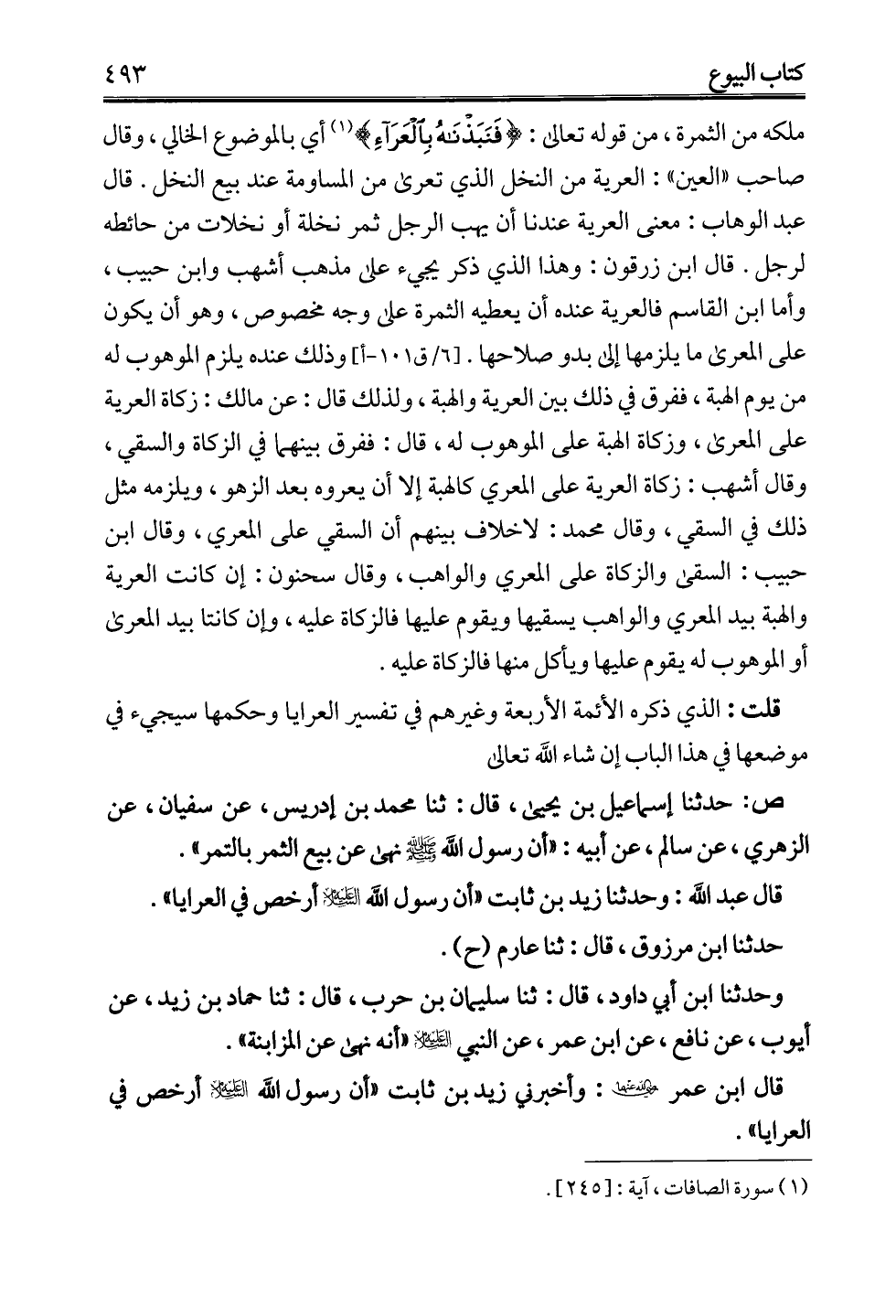 قال ابن عمر -رضي الله عنهما-: وأخبرني زيد بن ثابت "أن رسول الله -عليه السلام- أرخص في العرايا".