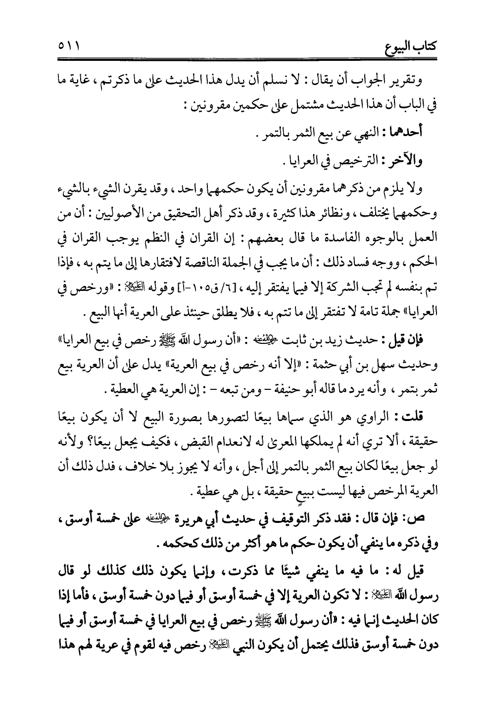 قلت: الراوي هو الذي سماها بيعًا لتصورها بصورة البيع لا أن يكون بيعًا حقيقة، ألا تري أنه لم يملكها المعرى له لانعدام القبض، فكيف يجعل بيعًا؟ ولأنه لو جعل بيعًا لكان بيع الثمر بالتمر إلى أجل، وأنه لا يجوز بلا خلاف، فدل ذلك أن العرية المرخص فيها ليست ببيعٍ حقيقة، بل هي عطية.