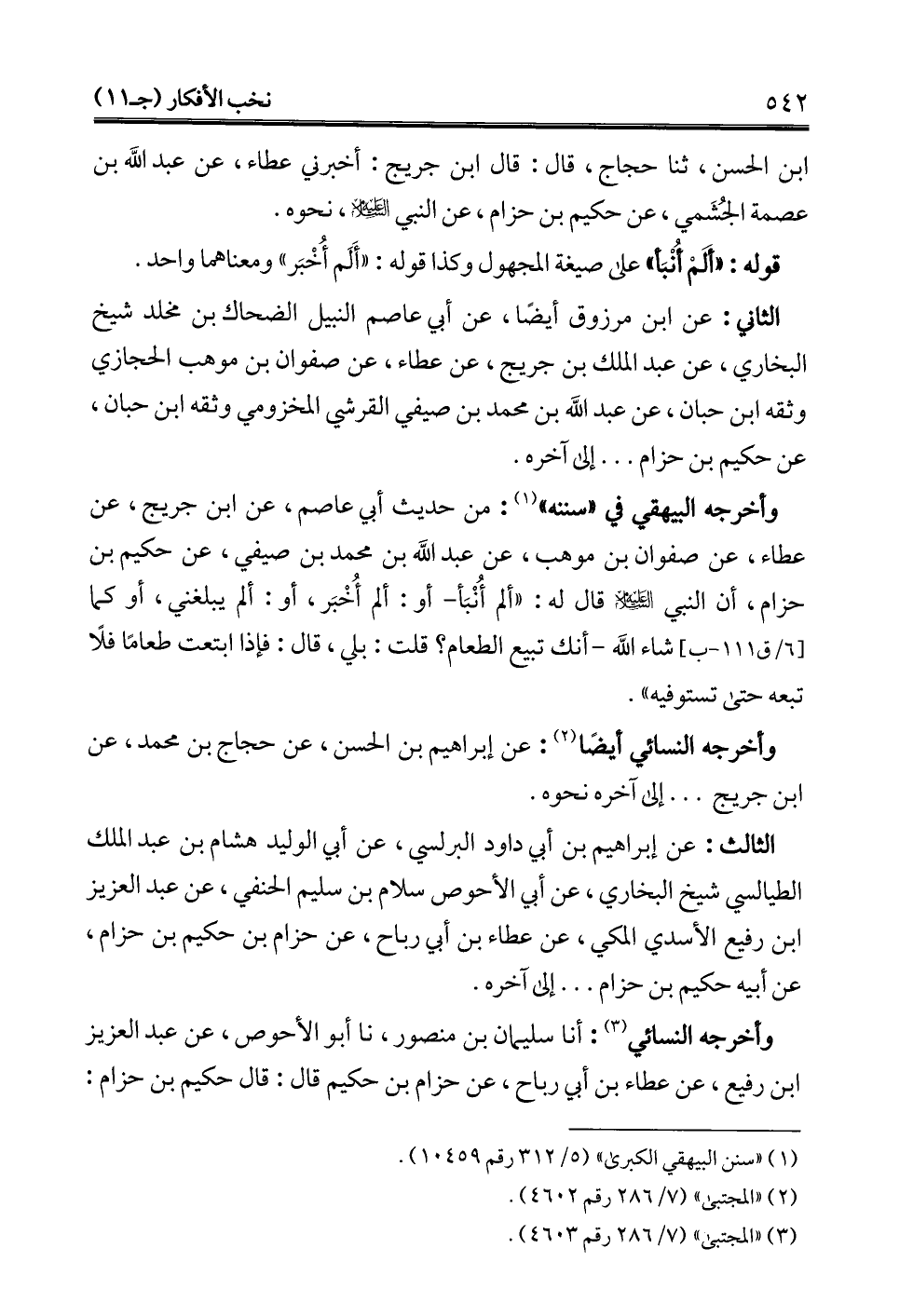 ابن الحسن، ثنا حجاج، قال: قال ابن جريج: أخبرني عطاء، عن عبد الله بن عصمة الجُشُمي، عن حكيم بن حزام، عن النبي -عليه السلام-، نحوه.