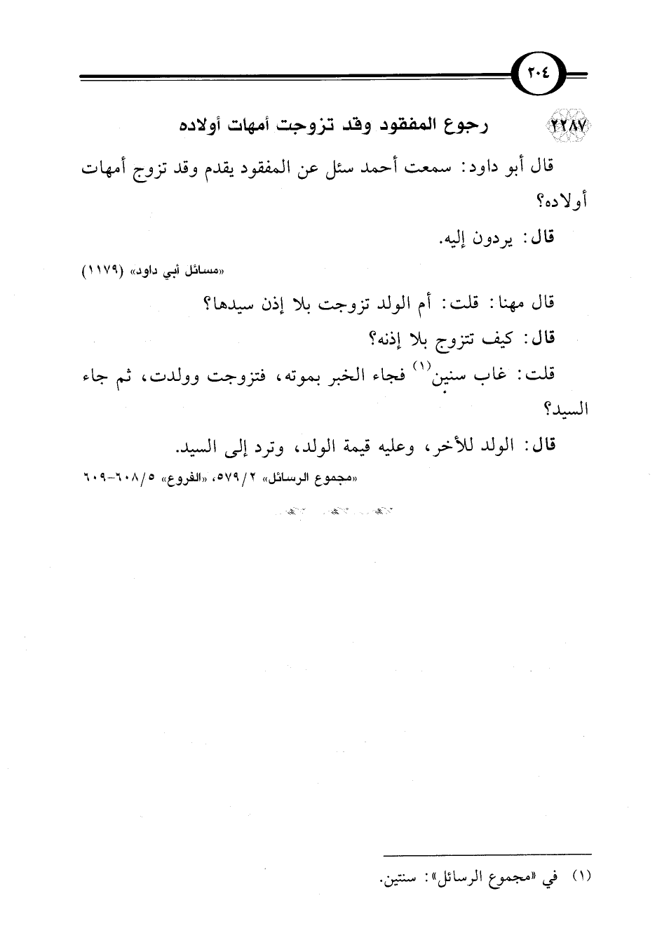 2287 - رجوع المفقود وقد تزوجت أمهات أولاده