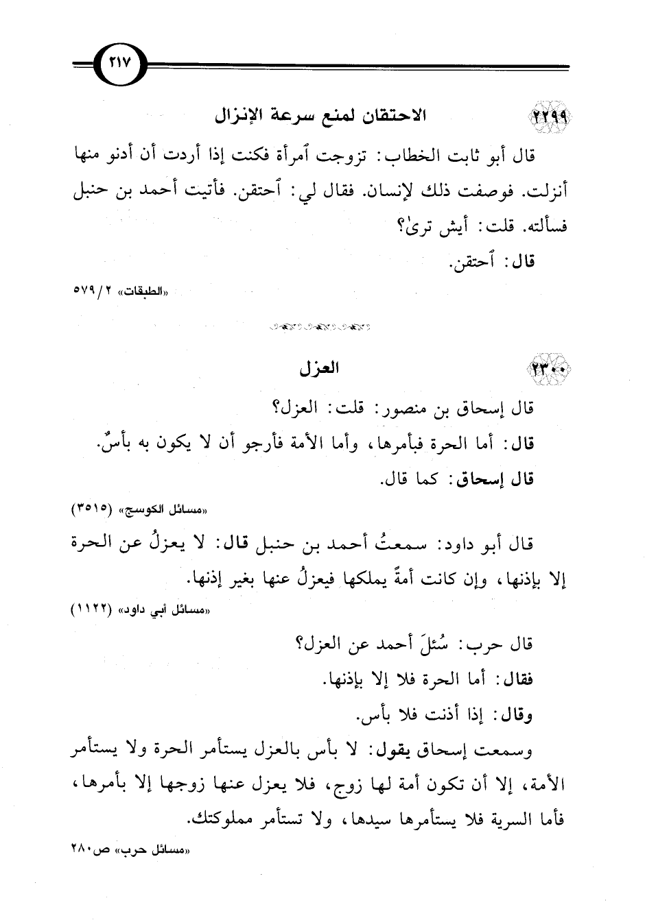 قال إسحاق بن منصور: قلت: العزل؟