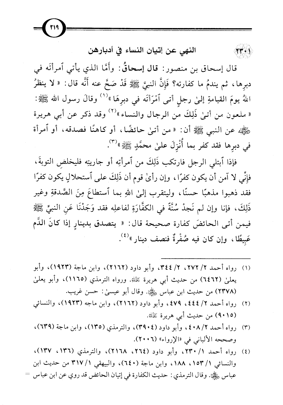 (¬4) رواه أحمد 1/ 230، وأبو داود (264، 2168)، والترمذي (136، 137)، والنسائي 1/ 153، 188، وابن ماجة (640)، والبيهقي 1/ 317 من حديث ابن عباس -رضي اللَّه عنهما-. وقال الترمذي: حديث الكفارة في إتيان الحائض قد روي عن ابن عباس =