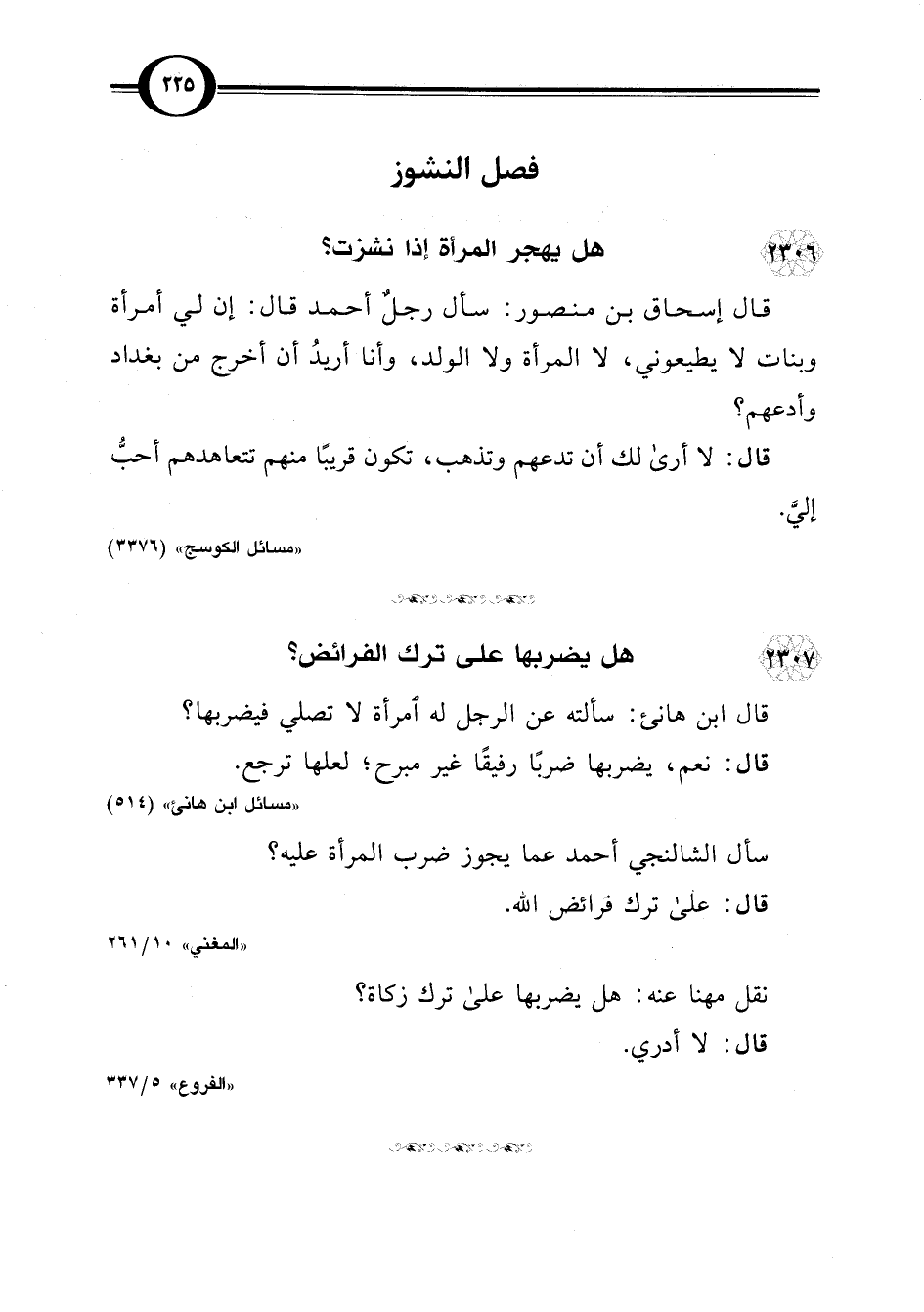 سأل الشالنجي أحمد عما يجوز ضرب المرأة عليه؟