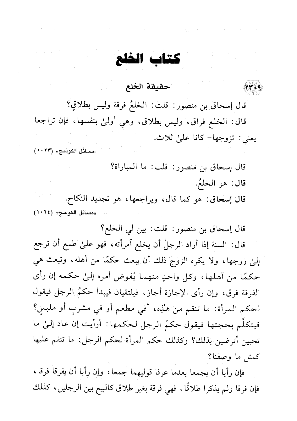 قال إسحاق بن منصور: قلت: بين لي الخلع؟