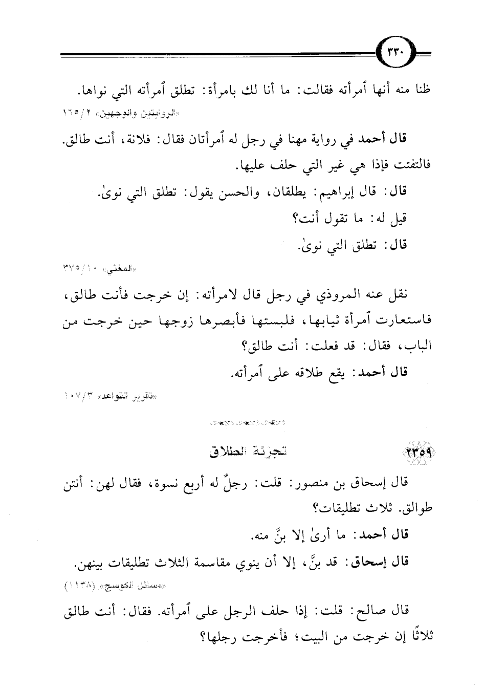 قال إسحاق بن منصور: قلت: رجلٌ له أربع نسوة، فقال لهن: أنتن طوالق. ثلاث تطليقات؟