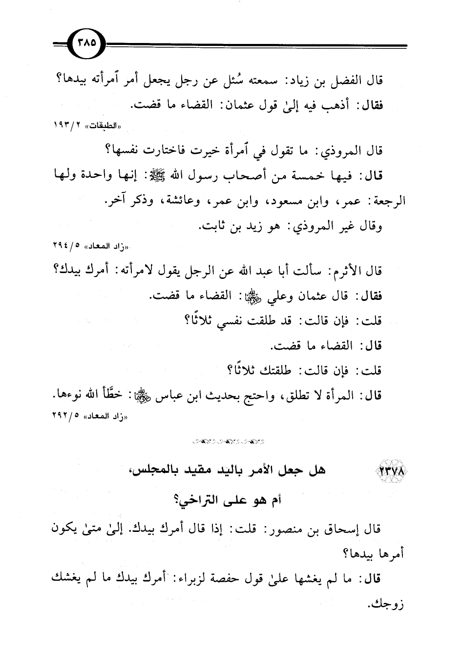 2378 - هل جعل الأمر باليد مقيد بالمجلس، أم هو على التراخي؟