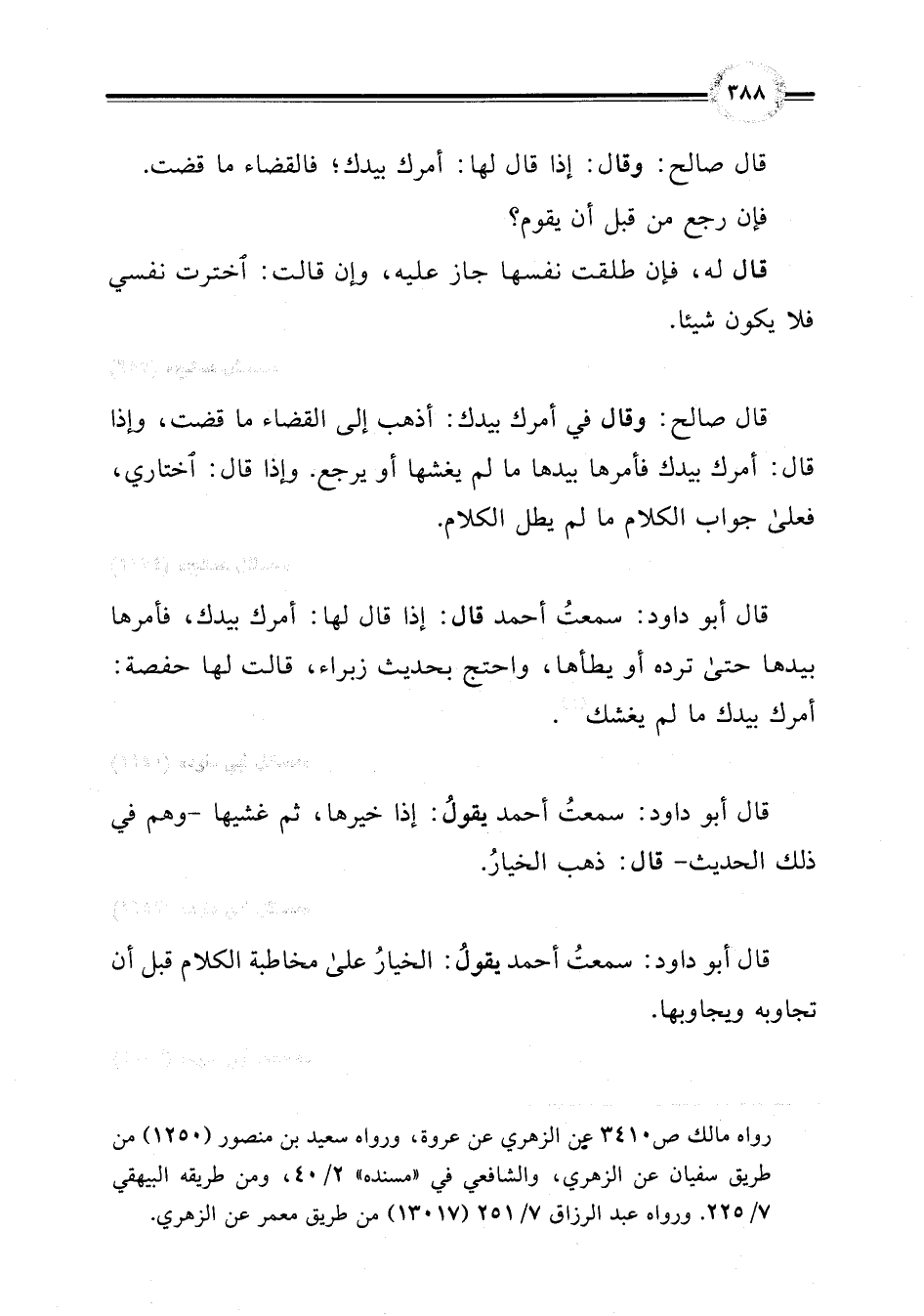 قال أبو داود: سمعتُ أحمد يقولُ: الخيارُ على مخاطبة الكلام قبل أن تجاوبه ويجاوبها.