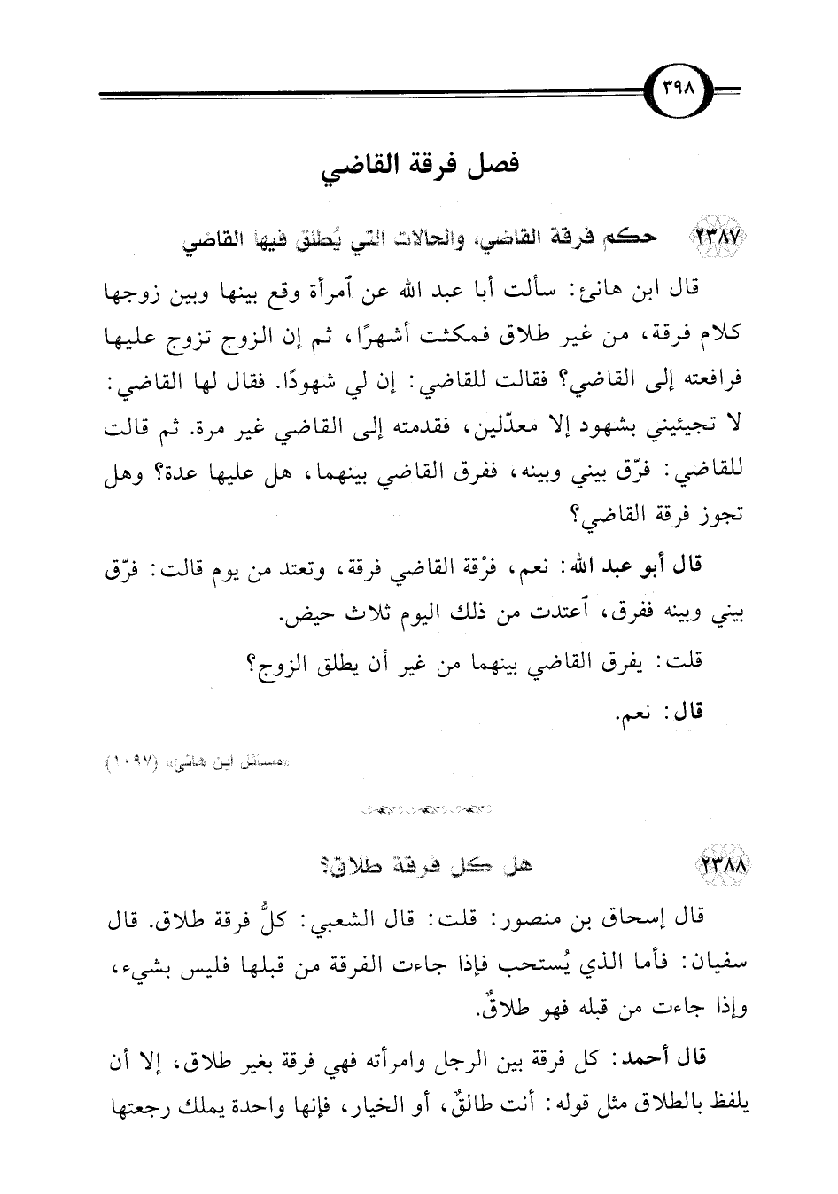 2387 - حكم فرقة القاضي والحالات التي يُطلق فيها القاضي