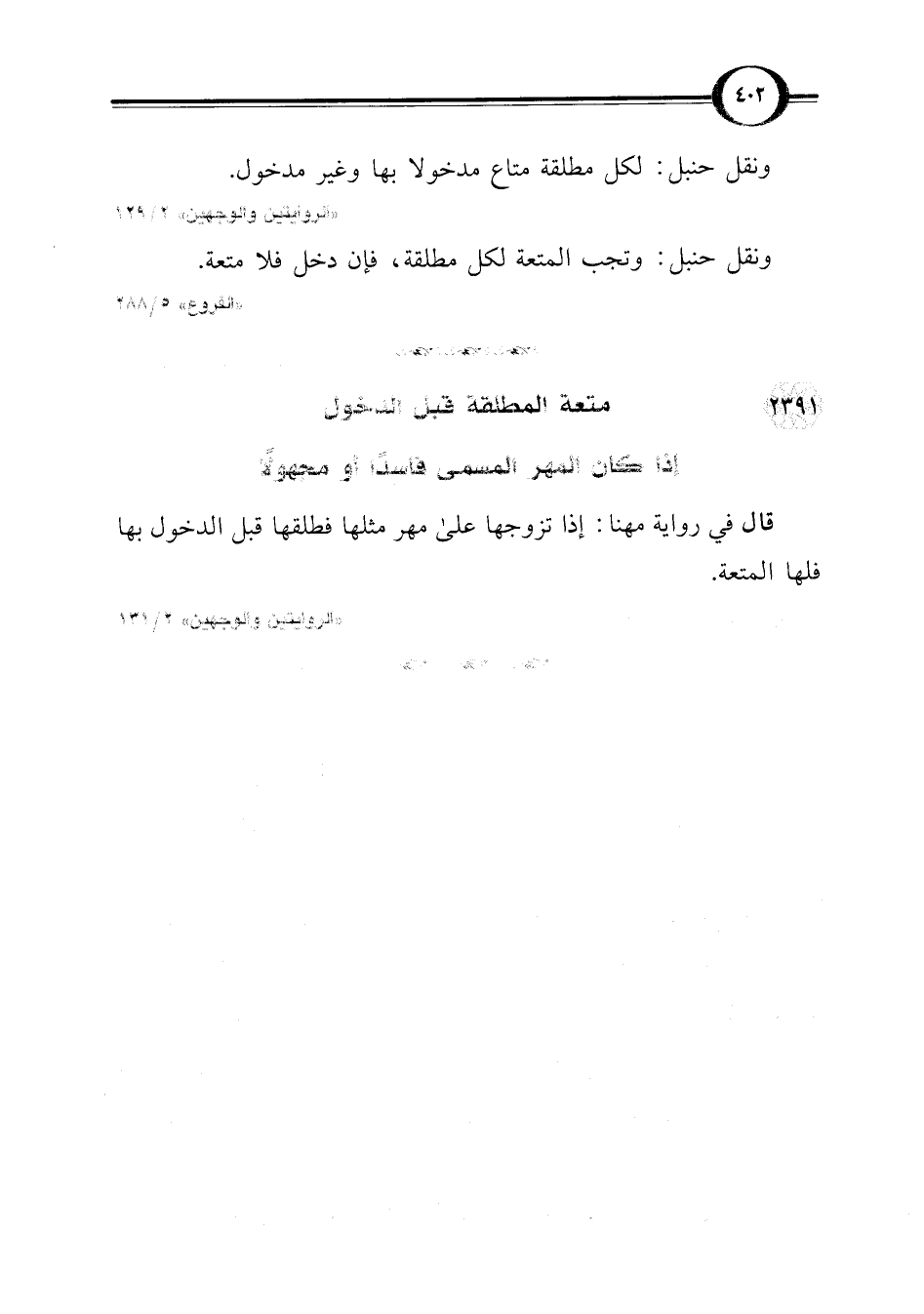 2391 - متعة المطلقة قبل الدخول إذا كان المهر المسمى فاسدًا أو مجهولًا