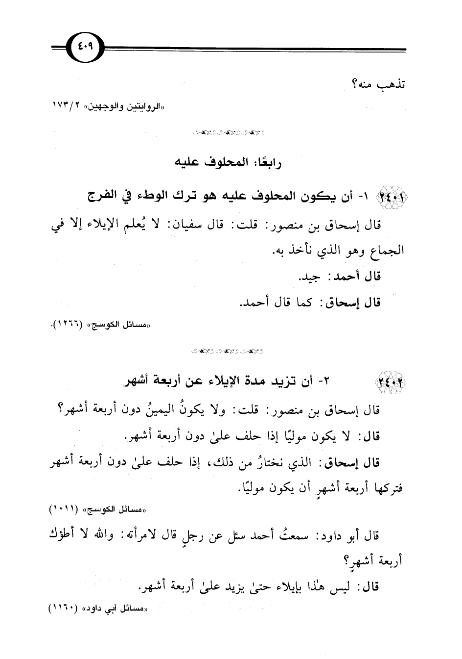 "مسائل الكوسج" (1011)