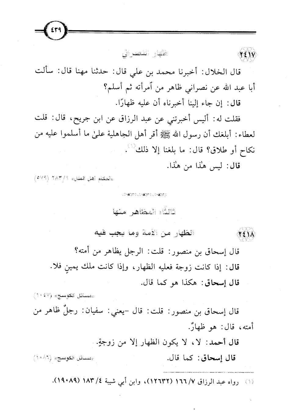 قال إسحاق بن منصور: قلت: قال -يعني: سفيان: رجلٌ ظاهر من أمته، قال: هو ظهارٌ.