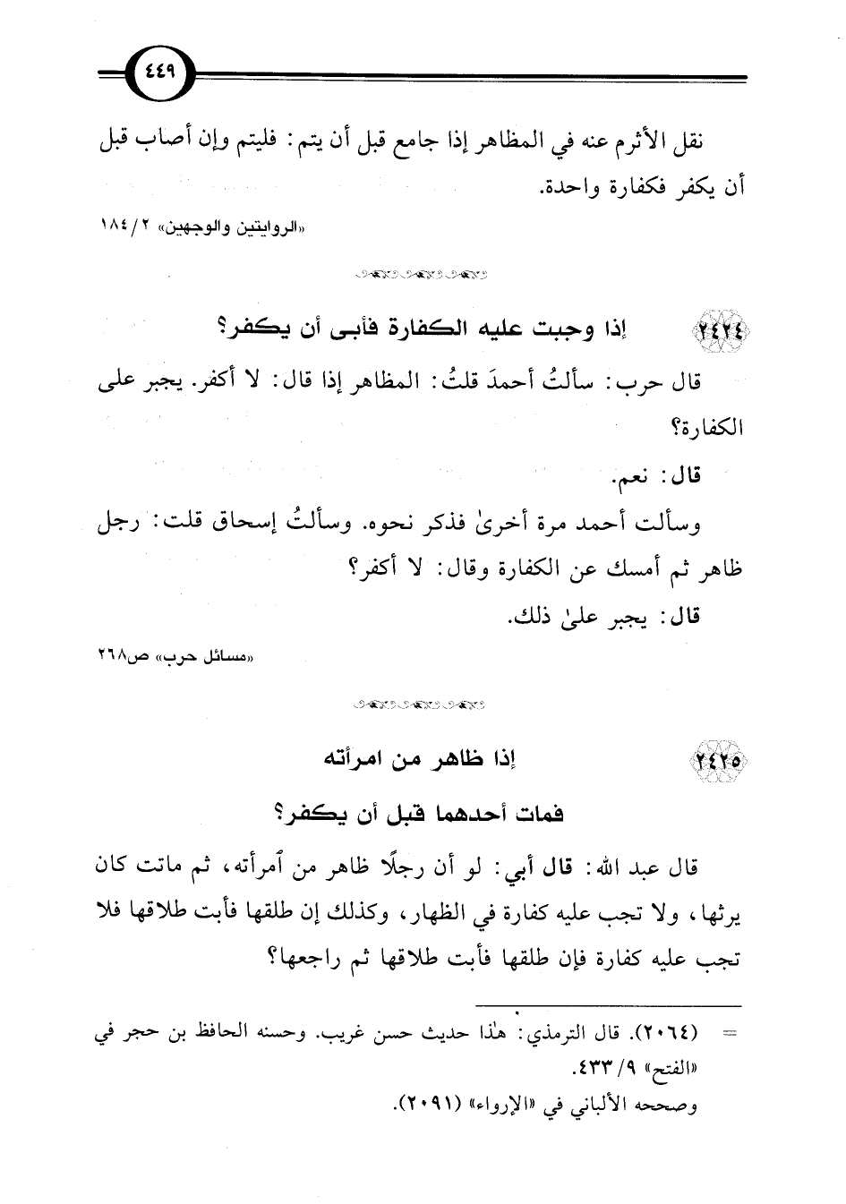 "الروايتين والوجهين" 2/ 184