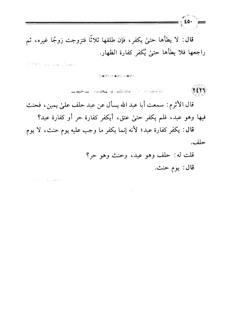 قال: لا يطأها حتى يكفر، فإن طلقها ثلاثًا فتزوجت زوجًا غيره، ثم راجعها فلا يطأها حتى يُكفر كفارة الظهار.