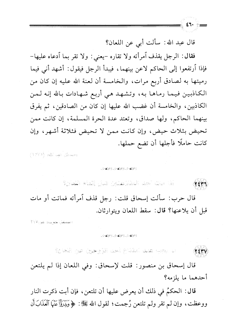 قال إسحاق بن منصور: قلت لإسحاق؟ وفي اللعان إذا لم يلتعن أحدهما ما يلزمه؟