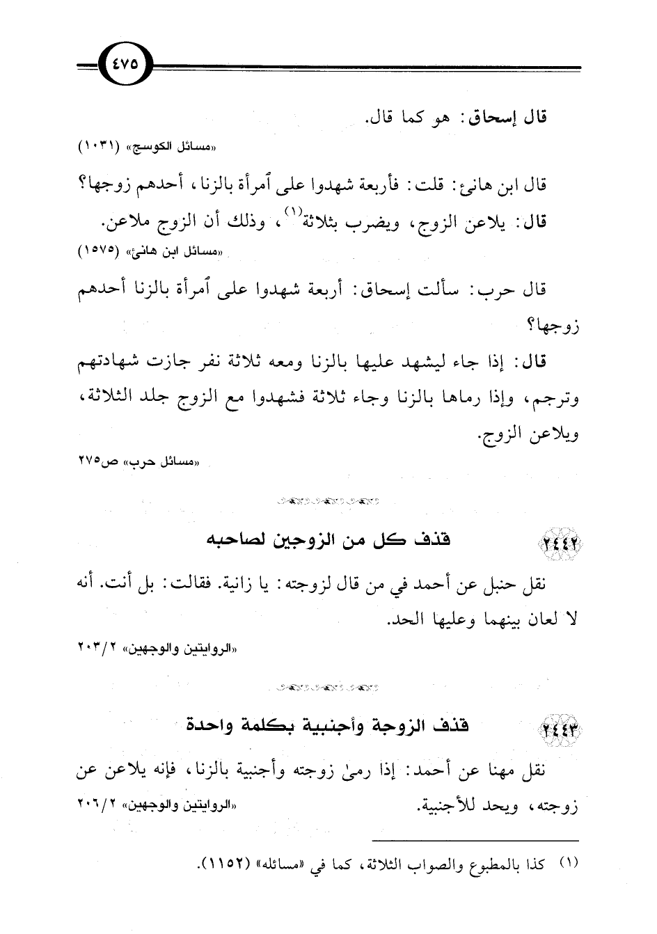(¬1) كذا بالمطبوع والصواب الثلاثة، كما في "مسائله" (1152).