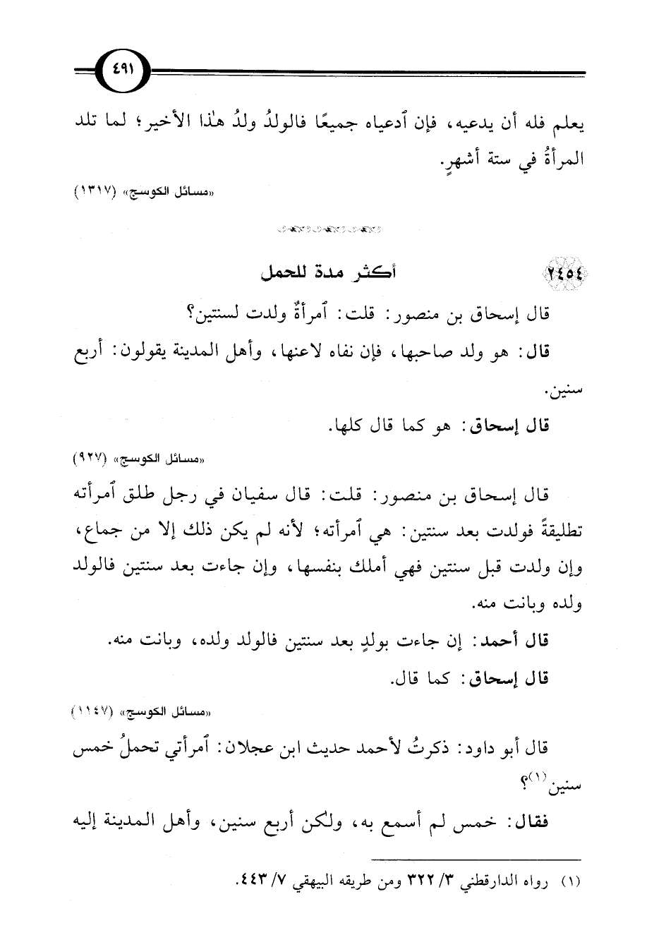 قال إسحاق بن منصور: قلت: امرأةٌ ولدت لسنتين؟