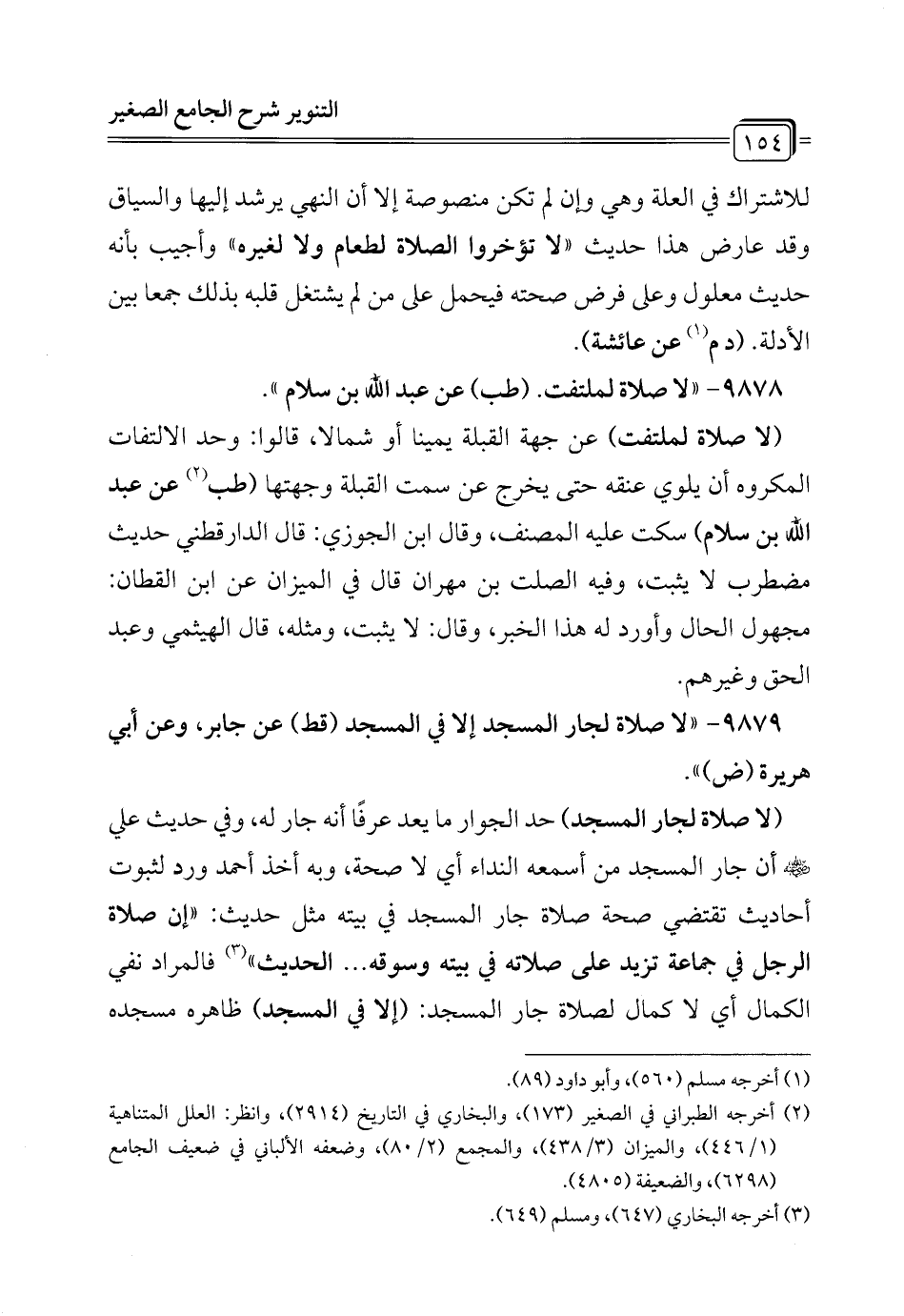 9879 - "لا صلاة لجار المسجد إلا في المسجد (قط) عن جابر، وعن أبي هريرة (ض) ".