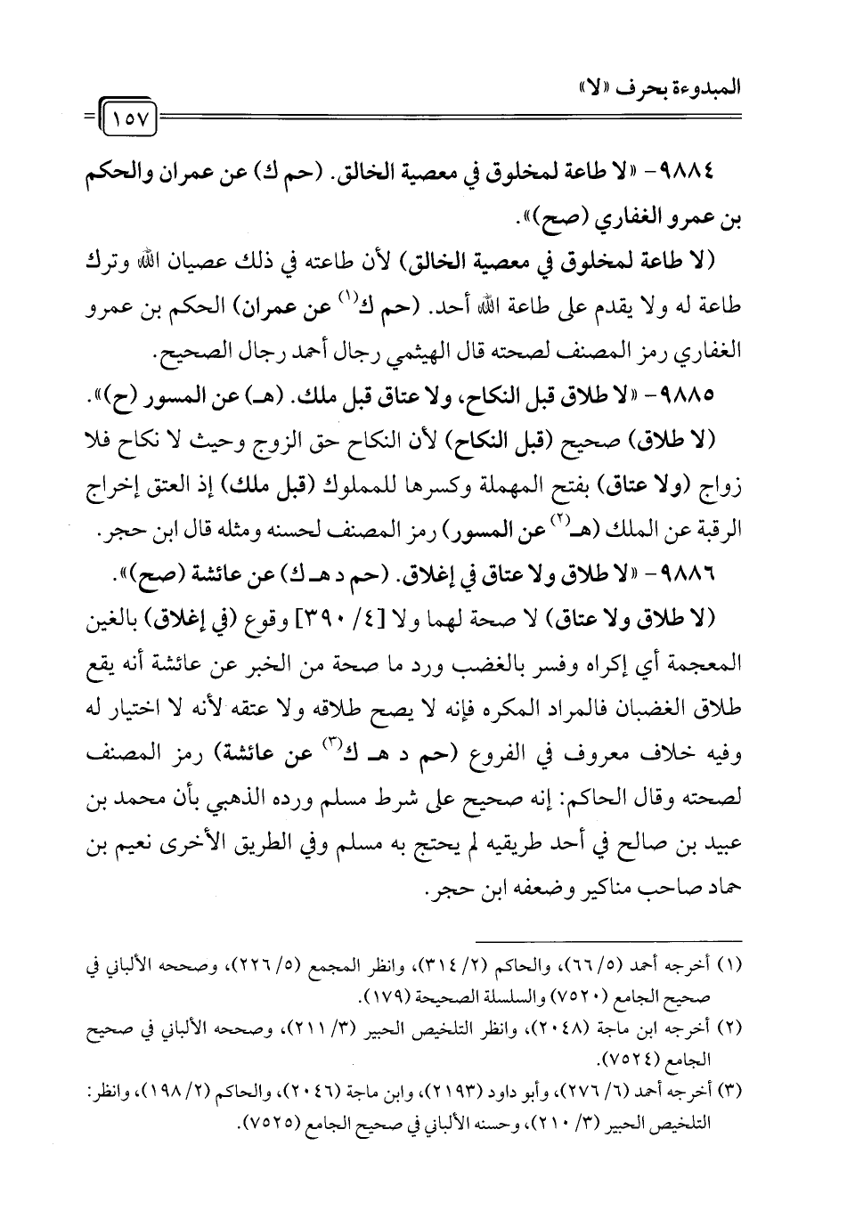 9886 - "لا طلاق ولا عتاق في إغلاق. (حم د هـ ك) عن عائشة (صح) ".