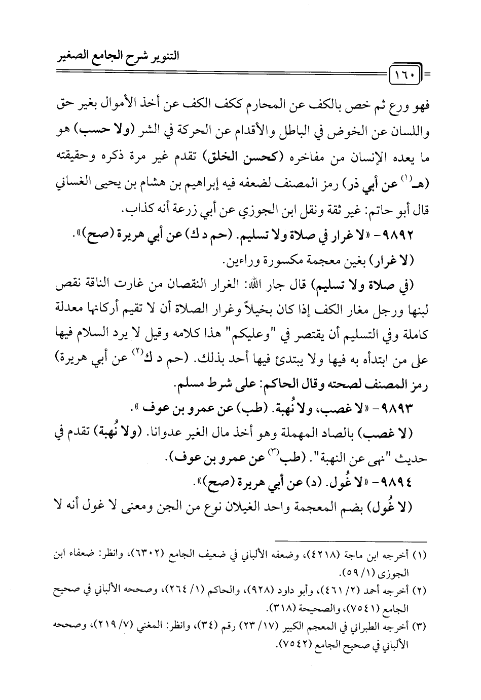 9892 - "لا غرار في صلاة ولا تسليم. (حم د ك) عن أبي هريرة (صح) ".