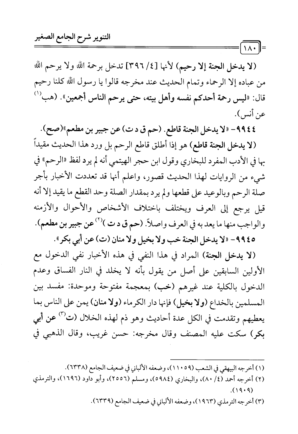 9944 - "لا يدخل الجنة قاطع. (حم ق د ت) عن جبير بن مطعم" (صح).