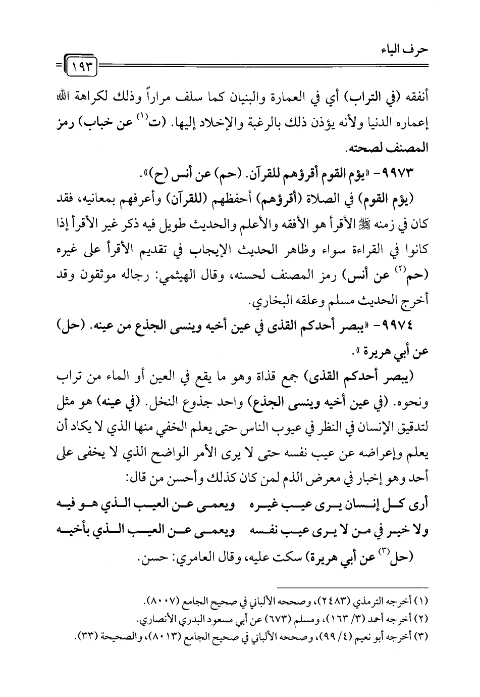 9973 - "يؤم القوم أقرؤهم للقرآن. (حم) عن أنس (ح) ".