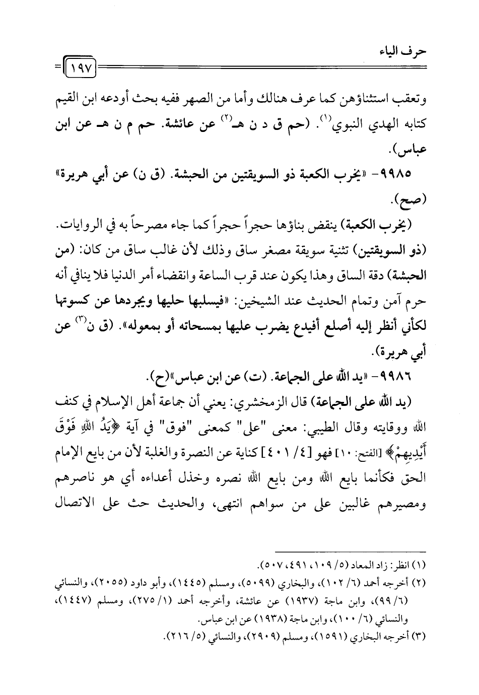 9985 - "يخرب الكعبة ذو السويقتين من الحبشة. (ق ن) عن أبي هريرة" (صح).