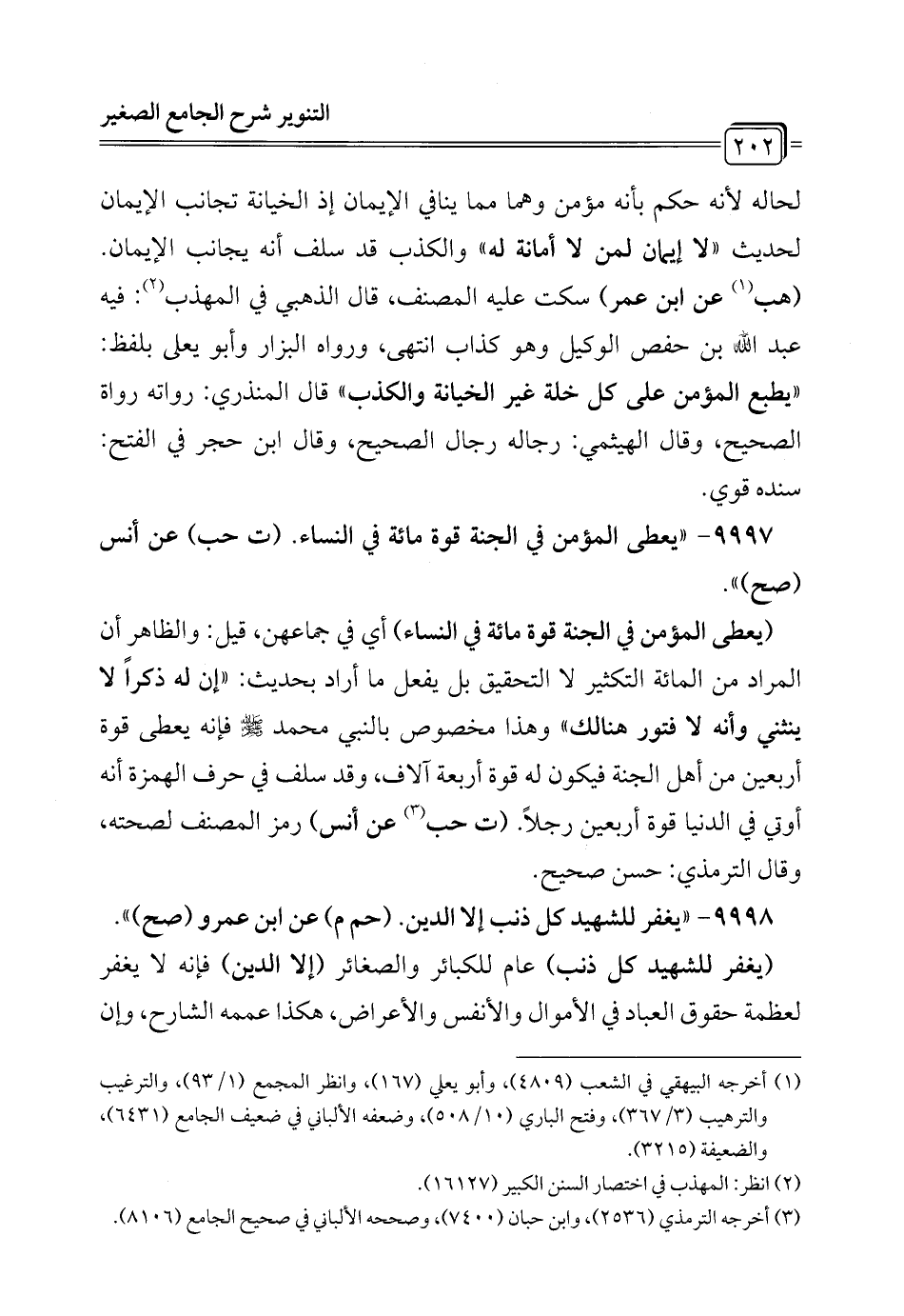 9998 - "يغفر للشهيد كل ذنب إلا الدين. (حم م) عن ابن عمرو (صح) ".