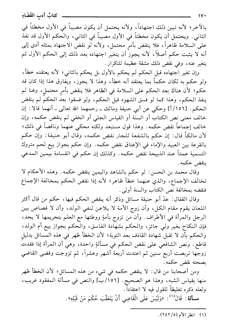 مسألة: ٌَقَالَ: "وَلَيْسَ عَلَى اَلْقَاضِي أَنْ يَتَعَقَّبَ حُكْمَ مَنْ قَبْلِهِ".