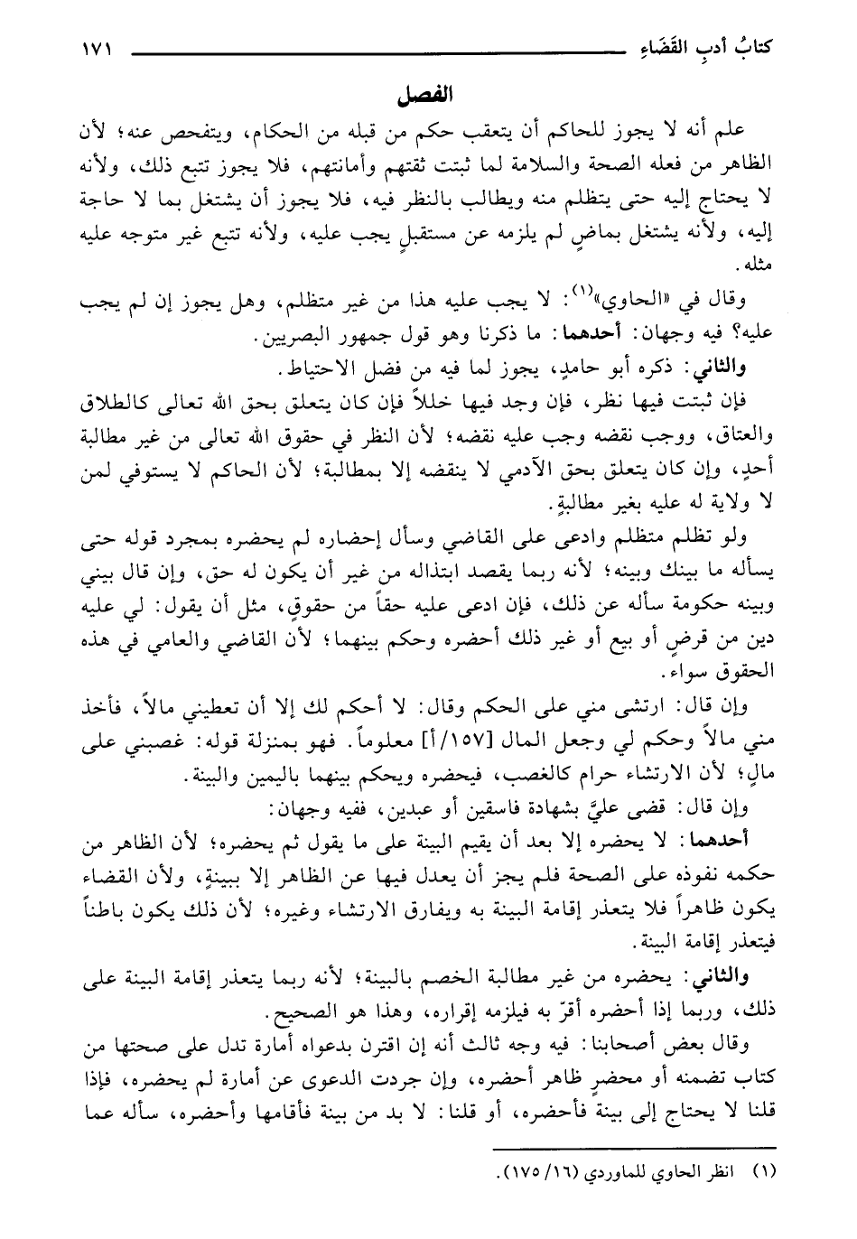 وقال في "الحاوي": لا يجب عليه هذا من غير متظلم, وهل يجوز إن لم يجب عليه؟ فيه وجهان: أحدهما: ما ذكرنا وهو قول جمهور البصريين.